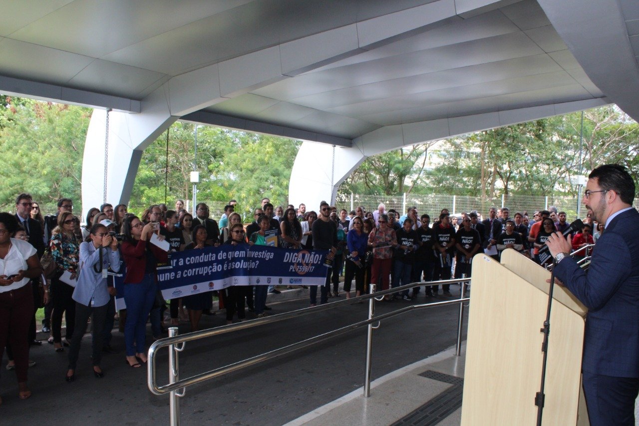 Durante o ato, o presidente Angelo Santos condenou a tentativa de criminalizar o exercício de funções essenciais da Magistratura, do MP e das polícias. “O PL vai na contramão dos anseios da população, que tem tanto clamado pelo combate à criminalidade e corrupção, por isso, não podemos deixar de manifestar repúdio, veemente, contra o projeto”.