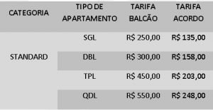 *Valores para feriados, consultar o setor de reservas.