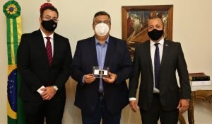 Ao final da reunião, os magistrados entregaram, ao governador, o Selo dos 50 Anos da AMMA e fizeram o convite para a solenidade de solene da nova Diretoria Executiva e Conselho Fiscal, por videoconferência, no dia 4 de janeiro, quando a Associação passará a ser presidida pelo juiz Holídice Barros.