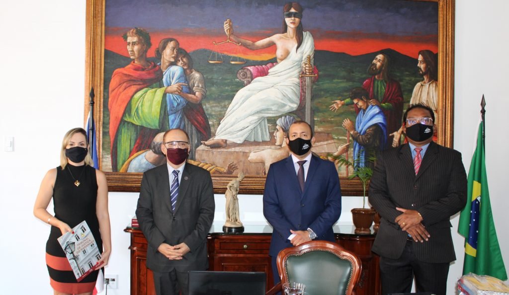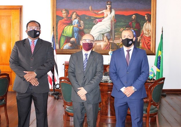 Holídice Barros e Marco Adriano discutiram com o desembargador Lourival Serejo a celebração de um Termo de Cooperação entre a AMMA e o Tribunal, envolvendo melhoria da sede, teletrabalho, inovação técnica de gestão e outros pontos.