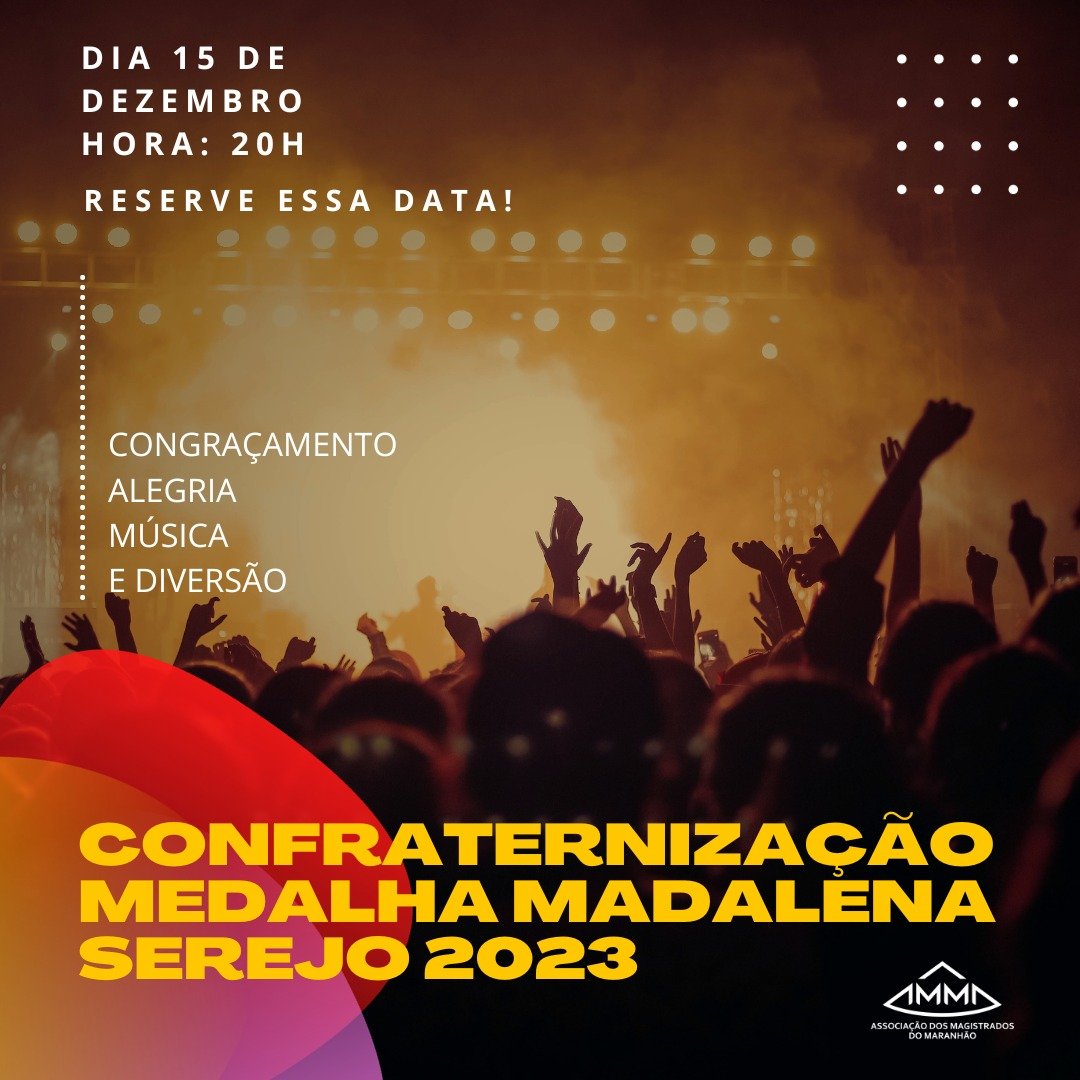 A exemplo dos anos anteriores, uma grande festa marcará a entrega da Medalha Desembargadora Madalena Serejo de 2023, que acontecerá na noite do dia 15 de dezembro, no Salão de Eventos da sede social e esportiva da AMMA, no Calhau. O evento terá início às 20h, com a presença de associados (as) e seus (as) dependentes.